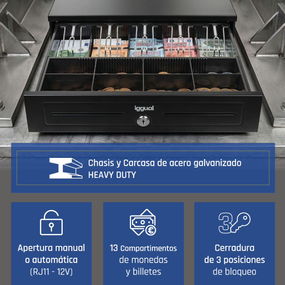 iggual Cajón portamonedas IRON-HD 41cm 5+8 negro